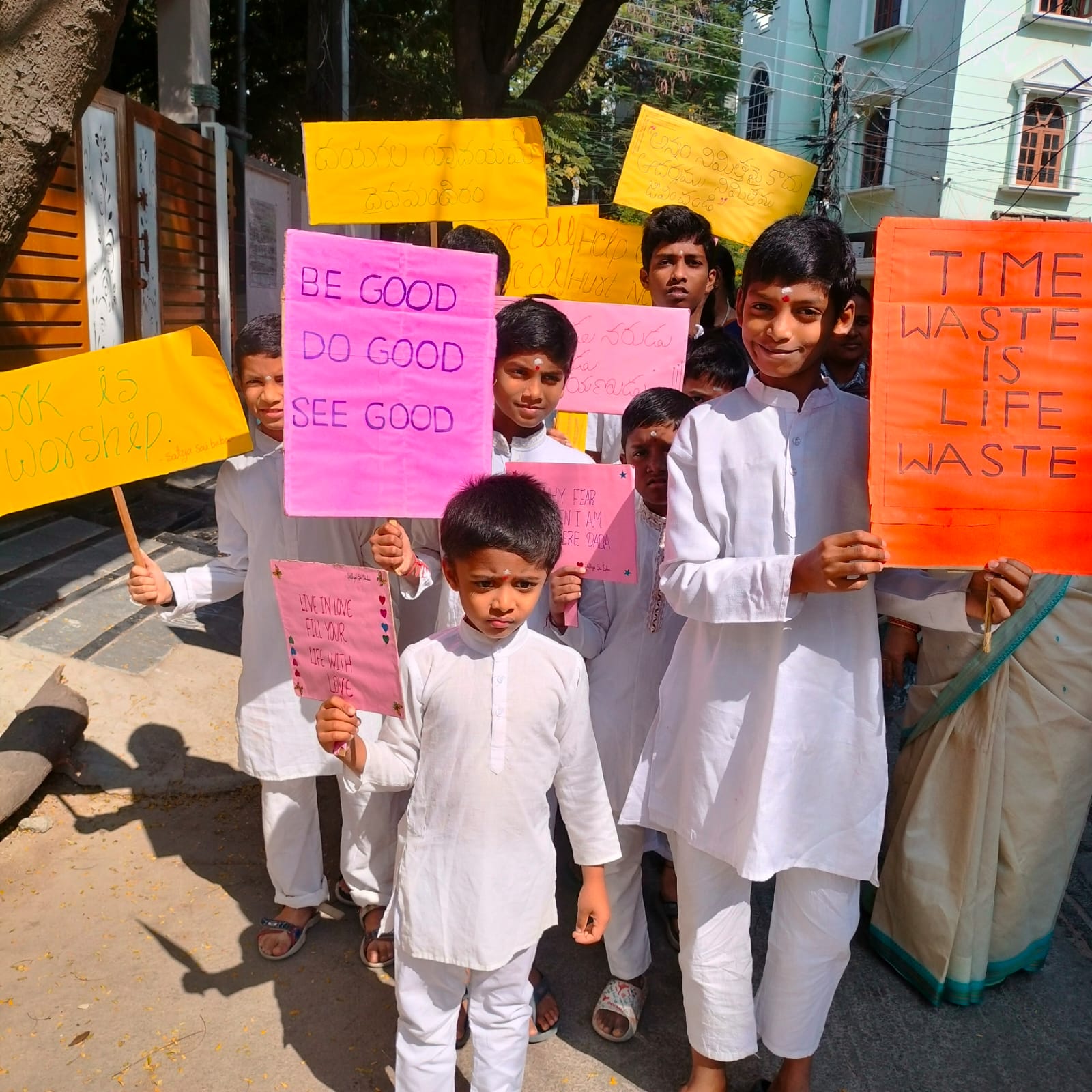 Balvikas children participated in the rally with spreading the human values slogans with Sri Sathya Sai Vakya Vibhuthi and Padya sukthulu.